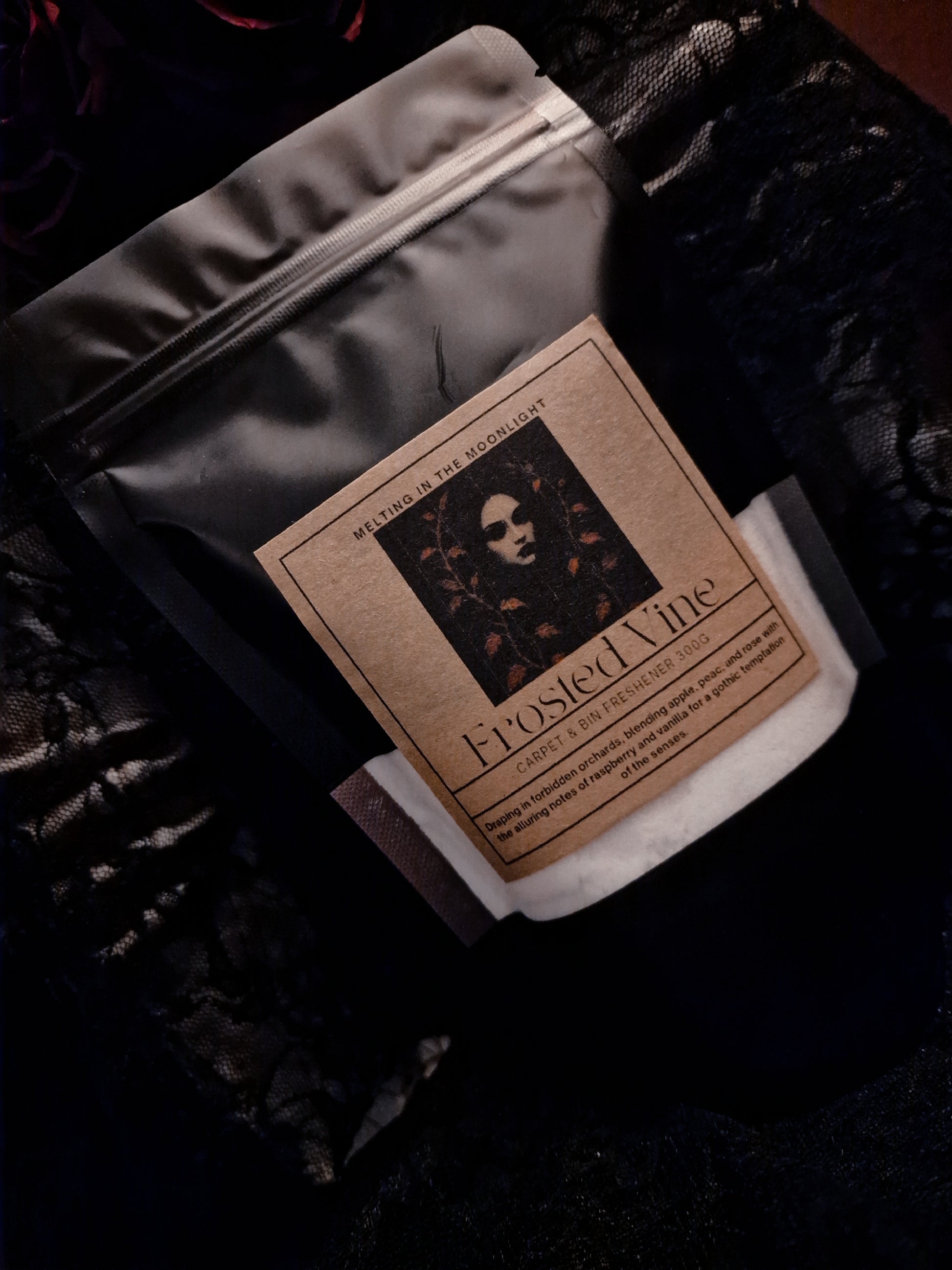 Draping in forbidden orchards, apple, peach and rose with the alluring notes of raspberry and vanilla for a gothic temptation of the senses.
