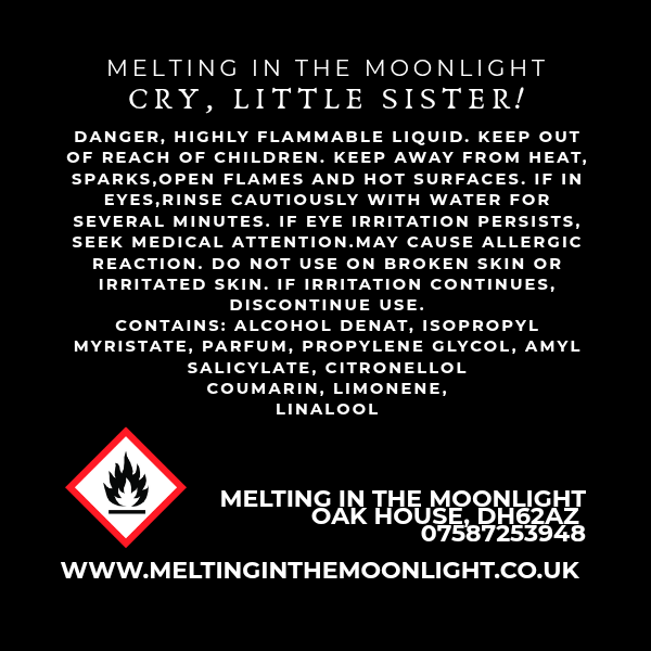 The scent of boardwalk nights and blood-red moons, where the ocean roars beneath the pier and laughter hides something sharp. It opens with the bright sting of Reggio di Calabria bergamot, like a lure in the dark, pulling you toward the thrill. Then the heart turns,Ambroxan, rich and salt-tinged, wrapping around you with the warmth of skin and the promise of something you shouldn’t want. Its woody trail lingers like leather warmed by the sun, motor oil clinging to the wind, and smoke curling from a distant bonfire. This is the fragrance of the fearless, the lost, and the eternal, danger you can taste, freedom you can’t forget. In the world of Cry, Little Sister, sleep all day, party all night… and never grow old.